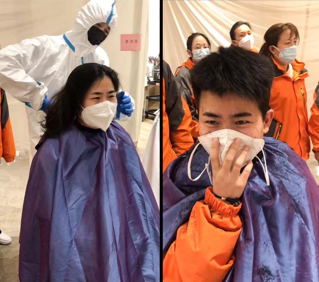 武漢市委秘書長和江岸區(qū)委書記、區(qū)長等領導同志,看到姑娘們長長的秀發(fā)一片片落下,感動地說,疫情過去一定為你們請功!你們將成為武漢的榮譽市民!