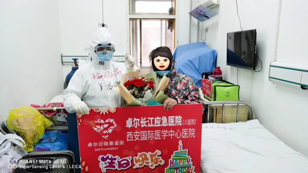 醫(yī)護(hù)人員為74歲患者孫某某送生日鮮花