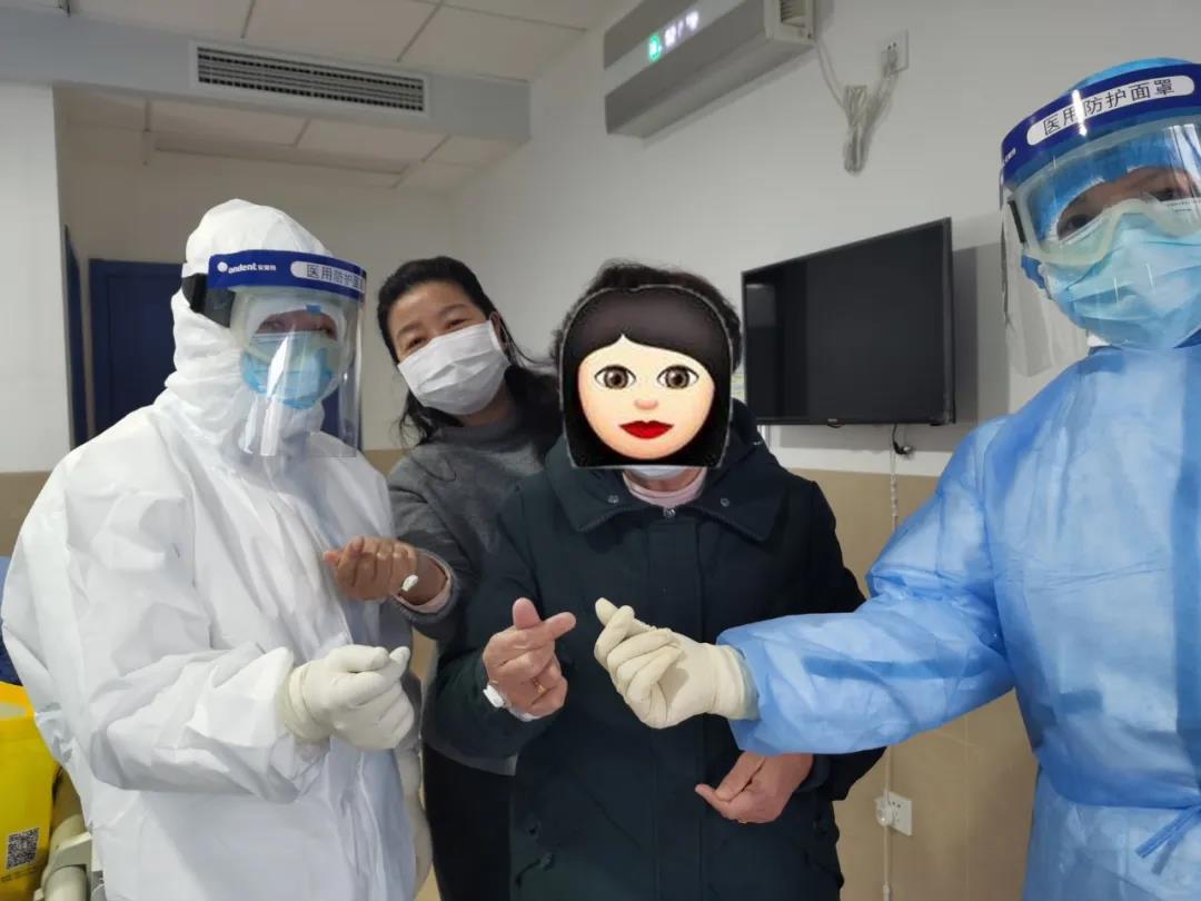 65歲患者劉某與醫(yī)護(hù)人員一起比心