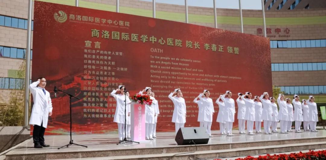 隨后,商洛國際醫(yī)學(xué)中心醫(yī)院舉行了新員工入職授帽儀式,600余位醫(yī)護工作者在院長李春正院長帶領(lǐng)下莊嚴(yán)宣誓:“我們是天的使者,以救死扶傷為天職,施天使之愛,佑百姓健康……”