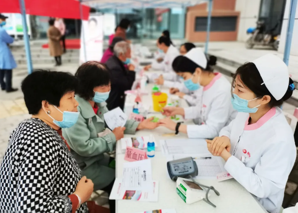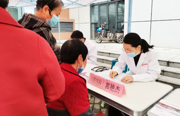 義診現(xiàn)場,各科醫(yī)護(hù)人員與前來咨詢的群眾充分溝通,免費(fèi)為大家測血壓、血糖,查看檢查報(bào)告并耐心地講解和指導(dǎo),并給出治療建議。