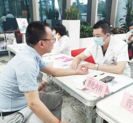 上午十一點(diǎn),由心臟內(nèi)科、消化內(nèi)科、神經(jīng)內(nèi)科、內(nèi)分泌科、中醫(yī)科、超聲診療中心等科室醫(yī)護(hù)人員組成的義診團(tuán)隊(duì)來到延長石油科研中心園區(qū)。
