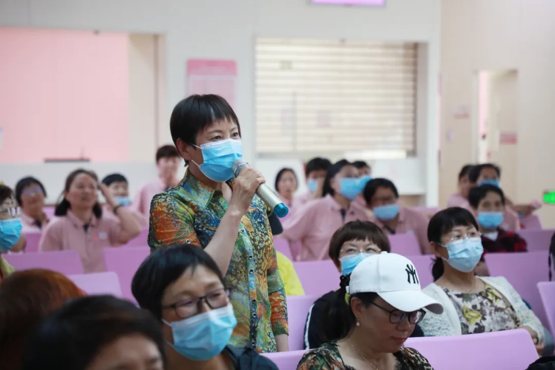 腫瘤一病區(qū)的醫(yī)護人員和志愿者們共同演練了一段八段錦,隨后的健康知識問答和歌曲快閃環(huán)節(jié)將活動氛圍推向高潮,大家爭先恐后地舉手搶答,現(xiàn)場問答也促進了對于腫瘤防治、康復知識的推廣。最后,大家合唱歌曲“相信我們會創(chuàng)造奇跡”,積極、歡樂的氛圍縈繞不息?;顒幼詈?,薛妍副院長、劉樹松教授和張俊美醫(yī)生對患者的提問進行了耐心、細致的解答。