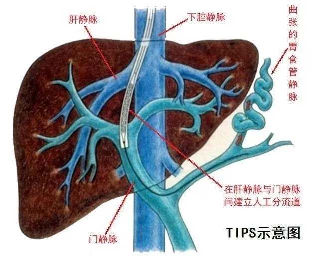 TIPS手術(shù)的出現(xiàn),就是為了解決門(mén)靜脈壓力過(guò)高引起的一系列并發(fā)癥。手術(shù)原理就是在肝靜脈和門(mén)靜脈之間建立一個(gè)分流通道,讓壓力很高的門(mén)靜脈血,能順利的流出,以達(dá)到降低門(mén)靜脈壓力的目的。