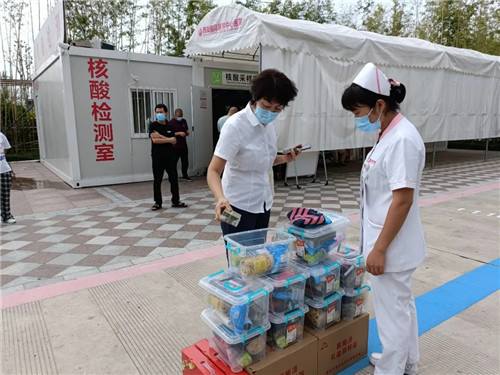 在第四屆“中國醫(yī)師節(jié)”到來之際,我院開展了主題為“百年華誕同筑夢,醫(yī)者擔(dān)當(dāng)踐初心”醫(yī)師節(jié)系列活動。通過多學(xué)科義診、走訪慰問等多個主題的活動,大力弘揚(yáng)大醫(yī)精誠的崇高精神,彰顯新時代醫(yī)師風(fēng)采。醫(yī)院工會對戰(zhàn)斗在一線的醫(yī)務(wù)工作者進(jìn)行了慰問,把醫(yī)院領(lǐng)導(dǎo)的溫暖和工會組織的關(guān)懷,送到了一線醫(yī)務(wù)工作者的心坎里。工會主席李曉芳帶隊(duì),前往發(fā)熱門診、急救中心、預(yù)防保健科、檢驗(yàn)中心等科室,為醫(yī)務(wù)人員送上慰問品。