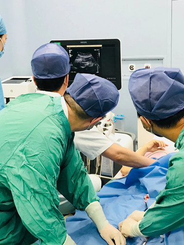 為了更好的服務(wù)患者,確保每一位患者都能得到最適合自己的治療方案,心臟外科二病區(qū)程亮主任團(tuán)隊(duì)聯(lián)合超聲診療中心韓增輝副主任團(tuán)隊(duì),于8月2日為一位75歲老人在超聲引導(dǎo)下順利完成下行腔靜脈濾器置入術(shù)?;颊呷∑脚P位,右髖外旋,右膝略屈,右側(cè)腹股溝常規(guī)消毒鋪巾,2%利多卡因5ml局部麻醉,右側(cè)股靜脈穿刺,置入導(dǎo)絲,確認(rèn)導(dǎo)絲進(jìn)入下腔靜脈,順導(dǎo)絲置入鞘管,拔出導(dǎo)絲,確認(rèn)鞘管頂端位于腎靜脈水平以下、匯合部以上的下腔靜脈腔內(nèi),以頂桿推入濾器至鞘管頂端,超聲定位,釋放濾器,超聲觀察:濾器打開(kāi)順利,位置正常,形態(tài)良好,彩色血流示:顯示濾器內(nèi)血流通暢。