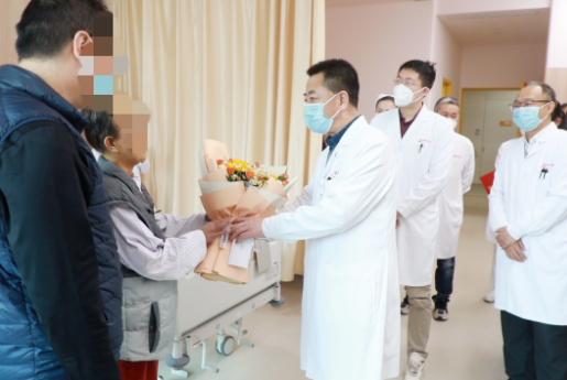 2023年1月31日,西安國際醫(yī)學(xué)中心醫(yī)院消化外科三病區(qū),劉延彤副院長、李國才主任、主管醫(yī)生許澤宇以及科室醫(yī)護(hù)團(tuán)隊,共同為當(dāng)日出院的李虹(化名)送上鮮花,向他們送上最誠摯的祝福。