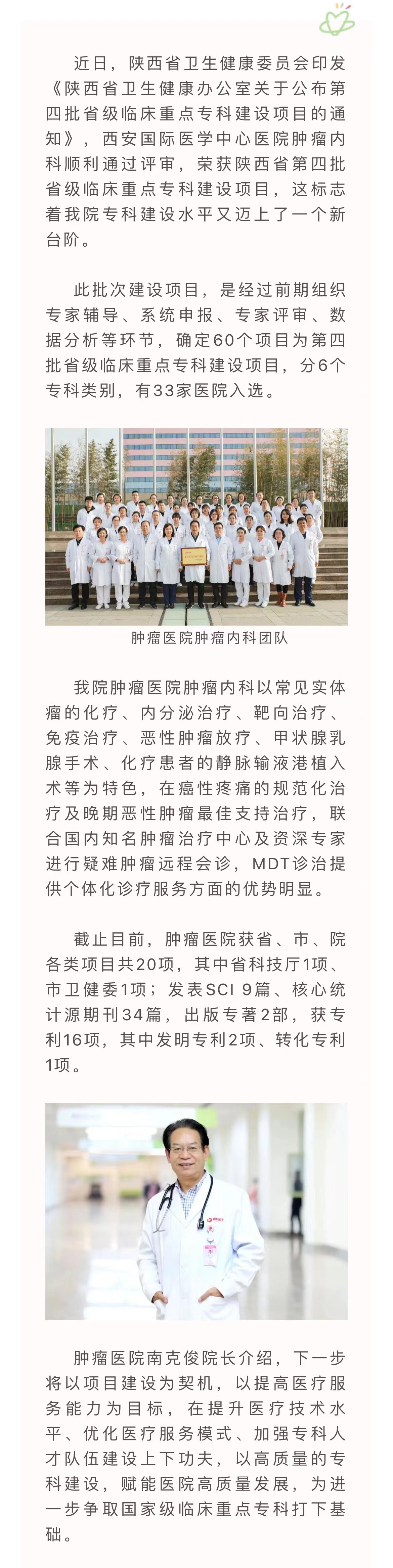 我院腫瘤內(nèi)科榮獲陜西省第四批省級(jí)臨床重點(diǎn)??平ㄔO(shè)項(xiàng)目