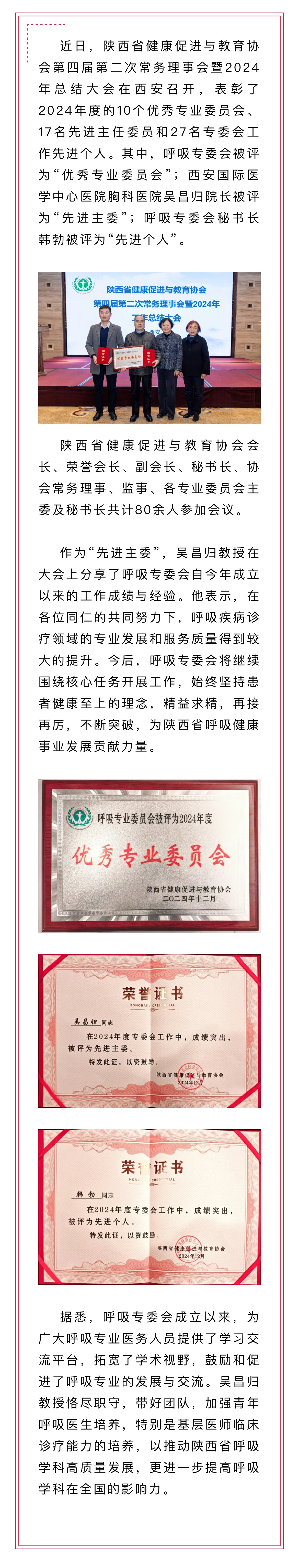 吳昌歸教授被評(píng)為陜西省健康促進(jìn)與教育協(xié)會(huì)2024年度先進(jìn)主委